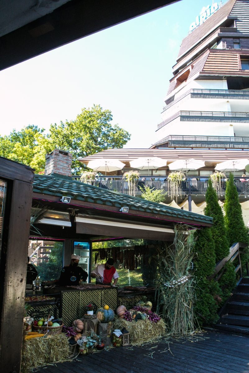 Restaurantul Forest este momentan închis pentru oaspeți, fiind utilizat exclusiv pentru evenimente interne sau grupuri organizate. Ne cerem scuze pentru disconfortul creat și vă mulțumim pentru înțelegere. Te așteptăm să savurezi preparatele cu specific românesc inovat și să te bucuri de peisajele montane la Restaurantul Forest, construit în mijlocul naturii, printre mesteceni, într-o atmosferă de petrecere tradițională. În plus, la comenzile à la carte sau preparatele pregătite în fața oaspeților, oferim vin fiert și țuică fiartă, din partea casei!