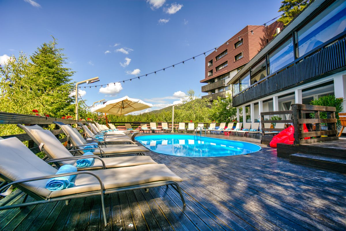 Deschisă în vara anului 2020, piscina outdoor încălzită îți oferă relaxare totală, într-un cadru natural, cu privelişti feerice! Și este gratuită pentru toți oaspeții resortului!